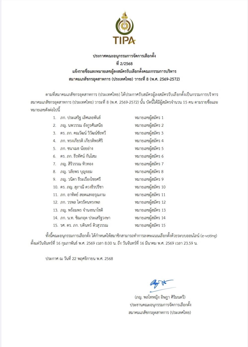 การสมัครรับเลือกตั้งเป็นคณะกรรมการบริหาร สมาคมเภสัชกรอุตสาหการ (ประเทศไทย) วาระที่ 8 (2569-2572) Created : 2025-10-21 By Read more..